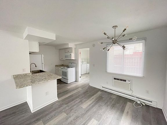 Two-story townhouse, fully renovated from top to bottom - no room was untouched! - New flooring throughout - Totally remodeled kitchen with new, never-used appliances - Updated Laundry room with new washer and dryer and new built in pantry - Updated Powder Room with new vanity and toilet - Completely renovated Main Bathroom with all new tile, flooring, vanity, toilet, and shower - Updated bedrooms with fresh new carpet and new air conditioning and heating. - New paint throughout the entire unit Water is included. Tenant pays electric. No charge for parking. No pets. No smoking.