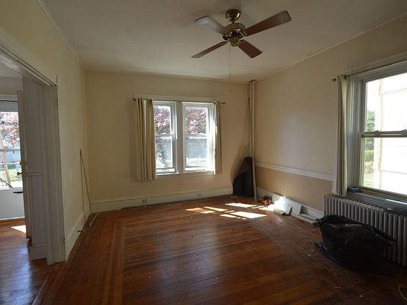 Currently being renovated and will be available December 15th for a YEARLY term! First floor 2 bedroom 2 bath apartment with off-street parking! Front entrance has large hall with double doors going into a large bedroom or to the left into a large living room. Full bath in between. Hardwood flooring through out, high ceilings and large windows.Kitchen has white cabinets, gas stove and island! Down the hall is another full bath and bedroom. There is a LARGE mudroom when entering from the back of unit where the parking is located. One off-street parking spaces. Washer/dryer hookups or the landlord will rent machines for an additional $35 per month. Pets considered for an additional $35 per month.