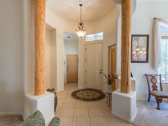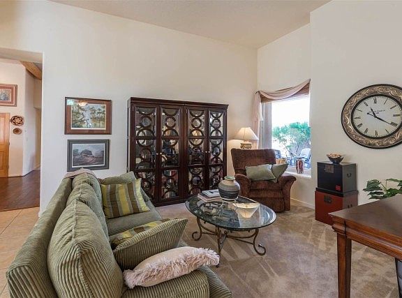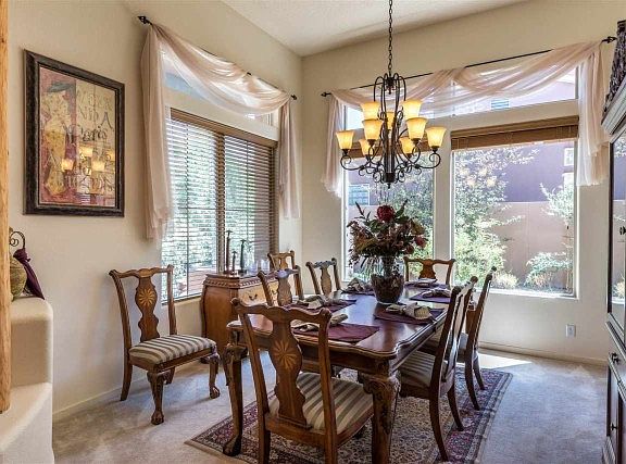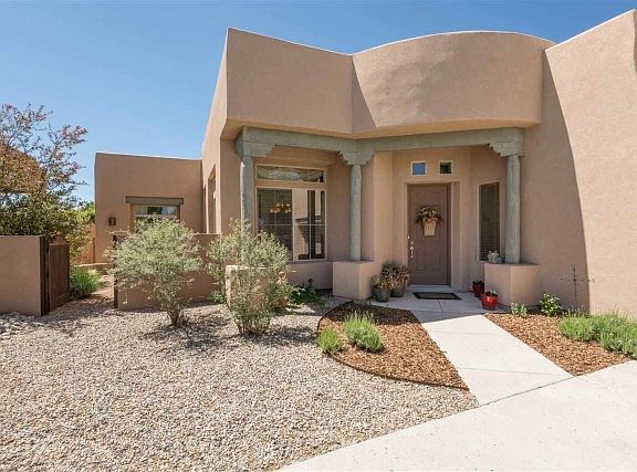 This Stunningly Lovely Light Filled Home is on a single level and is made for great living, cozy evenings before the fire and entertaining on a grand scale. Exceptional formal and informal spaces create a gracious environment for intimate dinners in the eat-in-kitchen and relaxing in the family room or entertaining in the more formal living and dining rooms. Great bedroom separation. Master Suite features Kiva Fireplace and opens to fabulous portal with water-wise-landscaping on drip irrigation to enhance your enjoyment of the Views of the Ortiz Mountains and rolling hills. Soaking tub, separate shower, dual vanities, and extravagant walk in closet complete the Lux. 5th Bedroom with separate entrance would make a great office! Tile and wood floors in the main living areas, radiant heat, cooling, and a new roof with transferable 10 year warranty make this home a stand out with Beauty and Value too! Rancho Viejo offers serenity, privacy, miles and miles of walking trails, a nearby community college and is only 20 minutes to the Santa Fe Plaza! Choice! View Virtual Tour.