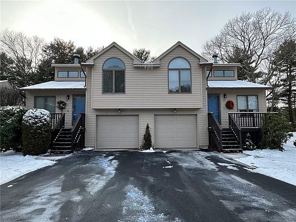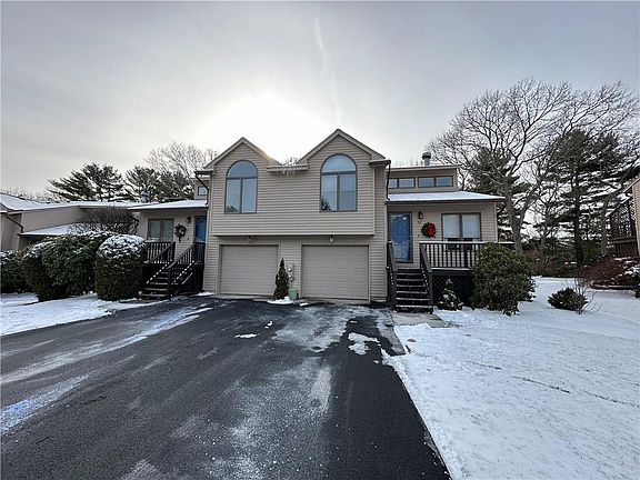 Beautiful Townhome located in Private wooded setting..Open living/great room with cathedral ceilings , skylights for plenty of light. Newly painted which brightens the home even more. Upgraded cabinets, built in shelving, pantry closets , book shelves and more. Newly installed ceiling fans…living room fireplace, upgraded stainless appliances , beautiful gleaming hardwoods on main levels.Granite kitchen and bath countertops. Kitchen offers a slider leading to deck which overlooks private wooded area for lovely outdoor living. Master bed with bathroom offers large double closets , bathroom and slider leading to small deck. Second full bath has new fully tiled shower. Lower level features family room/living room which includes laminate flooring, built in shelving/bookcase, supplemental heating, sliders leading to back yard, laundry area, storage closet, utility room , mudroom and access to the 1 car garage. Townhome is situated in wonderful location,..close to Wickford village, Newport, Narragansett, beach communities, many amementies ,walking trials and hi-way access.