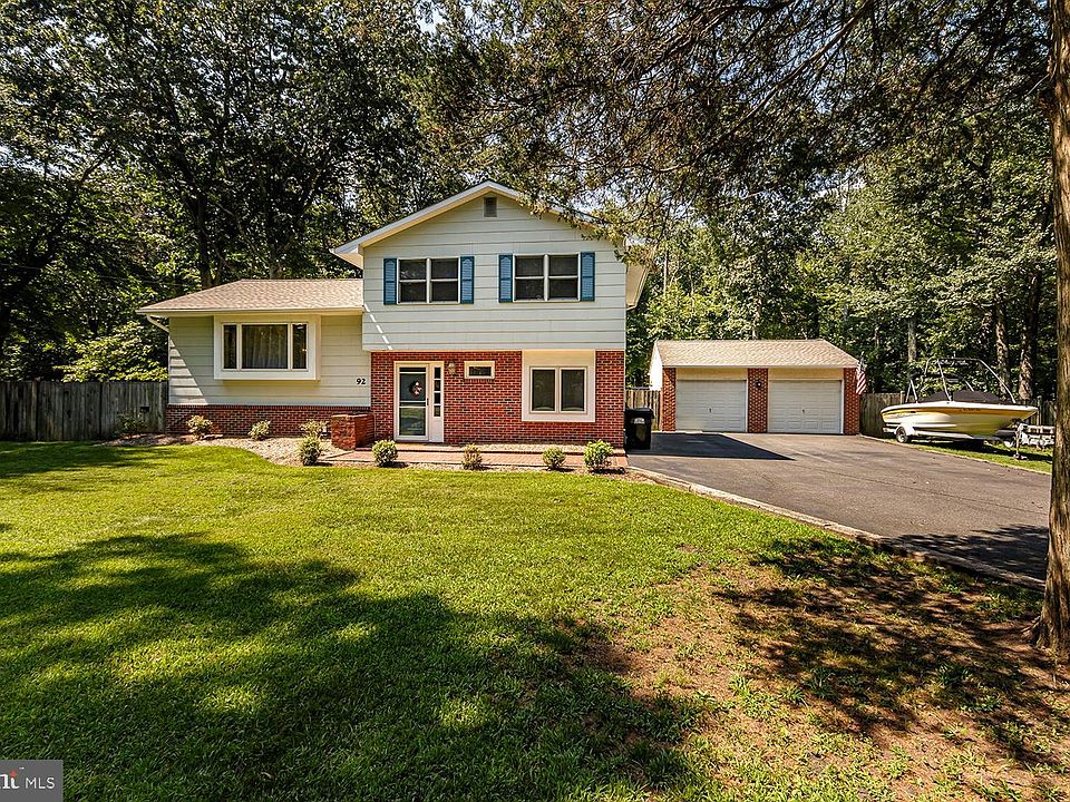 This newly well decorated split level home has been beautifully renovated! Come see for yourself this private 3/4 acre property that is nestled in wooded views. Open concept living, dining and farm kitchen area offers the perfect setting for entertaining. Walk in to an oversized family room boasting of a wood burning brick fireplace. Spacious laundry area, three bedrooms with lots of closet space. Backyard area patio, two car garage, shed and fully fenced in yard for children and or pets. New Timberline HD roof with seamless gutters, downspouts and splash block system. Driveway is nicely mapped out in asphalt for minimal maintenance. Newly installed seamless gutter, downspout & splash block system. This property has been meticulously taken care of and is shows. Come visit this gem in Medford Township.