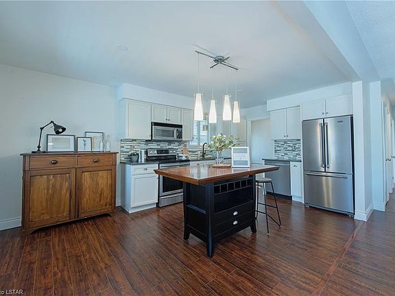 The weather is beginning to warm up, and you're probably looking forward to getting back outside. But what will you do while you're out there? If your answer doesn't include relaxing in your own lush backyard oasis--complete with inground pool and expansive patio--then you need to look at this completely updated White Oaks charmer. Settled on a quiet street in a mature neighbourhood, this home offers an awesome open family-friendly floorplan that is as suited for hanging out with the kids as it is to entertaining. The stylish kitchen offers tons of workspace on new quartz countertops and lots of storage in the updated cabinets. There's a large eat-in dining space, and the conversations can flow freely between the kitchen and large great room, which includes a beautiful fireplace with brick surround. Why not take the party outside? Beautifully landscaped, the large fenced rear yard is where everyone will want to spend their summer. Surrounded by greenery, the centerpiece is the outstanding kidney-shaped inground pool, which has a newer liner that carries a 20 year warranty. There is also a private sitting area with a wood deck that is perfect for long evening chats, plus a large concrete patio for summer BBQs or curling up with a good book. When it's time to head back inside, head downstairs to the finished lower level where there's a games/rec room, plus a bonus room, office/bedroom, and a full bath. There's also a separate basement entrance, which could allow for an in-law suite. You can retire to one of the 3 nice-sized bedrooms that are located upstairs along with the updated main bath. Outside, there's also a large, welcoming new front porch plus a new car port. Located close to all the shopping, amenities, and services in White Oaks, everything is close at hand. Everything you need for a perfect summer is here... Except you. Book your private viewing today!