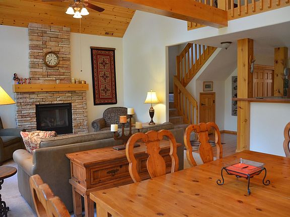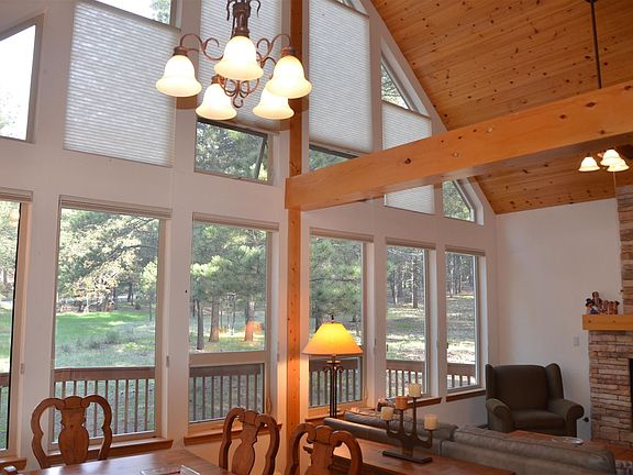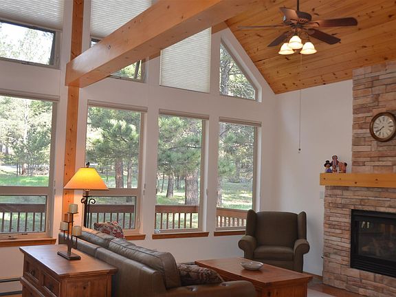 This is a Beautiful 3 bedroom, two bath Mountain Chalet in a park like setting. The half acre beautifully treed lot adjoins a large Greenbelt space on 2 sides which adds to the feeling of spaciousness. Conchas is a paved street coming directly from the main boulevard going through the village which means easy access year round. No need for a four wheel drive on the approach to this cabin as the asphalt driveway is flat. Located only 2 minutes from the village and 5 minutes to the golf course, tennis courts, Angel Fire Country Club and ski mountain, it doesn't get any more convenient than this. With a composite(TREX) deck on two sides(one side covered), this place is made for entertaining. Large master suite and sitting area on the second floor with spacious bathroom with Jacuzzi tub, walk in shower and walk in closet. This cabin has been lovingly maintained and is being sold fully furnished and accessorized with few exclusions.