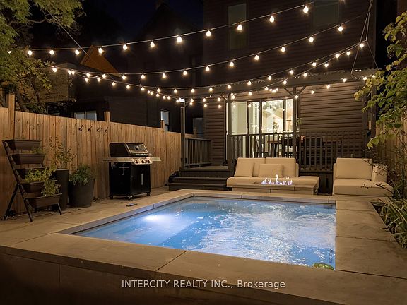 This one checks every box inside & out! 92 Dagmar Ave is one of those rare homes that instantly feels like home! Nestled in the heart of Leslieville, one of Toronto's most desirable & vibrant neighbourhoods, this stunning detached 2-storey 3BR + Den & 3.5 Baths combines the warmth of tradition with the ease of modern living from the moment you arrive. Its classic brick exterior, professional low-maintenance landscaping and generous porch & deck are truly exceptional. Once inside, you'll find a thoughtful open-concept plan designed to feel both expansive yet intimate. An airy main floor boasts of 9ft high smooth ceilings, pot lights thru-out with a flow that makes living & entertaining effortless. Every finish from the cabinetry, 5"wide hardwood, and laminate floors to the soft neutral palette, evokes to an understated sophistication. Enthusiastic chefs will love how the kitchen is both stylish and functional, featuring a 8'x3' centre island for generous seating & loads of storage, gas stove, panelled appliances & double floor-to-ceiling pantries with beautiful curated open shelving. Step outside thru huge sun drenched patio doors onto a generous a full-width deck with your morning coffee enjoying the tranquility of your private backyard oasis. Make your evenings magical. Bask in the glow of the Living Room gas fireplace or warm up on cool nights by your outdoor fire pit. Relax with a soothing dip in a luxurious 7'x9' swim spa in summer or winter. Retreat upstairs to the primary bedroom, truly a sanctuary featuring a gorgeous south-facing bay window that is bathed in natural light all day. The fully finished lower level features a rec room, plus a flex-space that can be a home office or guest bedroom with double windows & 3pc bath. This amazing home offers the perfect work-life-balance: a short 10min. commute to downtown with parks, cafes, artisanal shops, city's best brunch spots, top schools like Riverdale, TTC, Walk 97 or Bike 97 Walk Score! Don't miss this One!