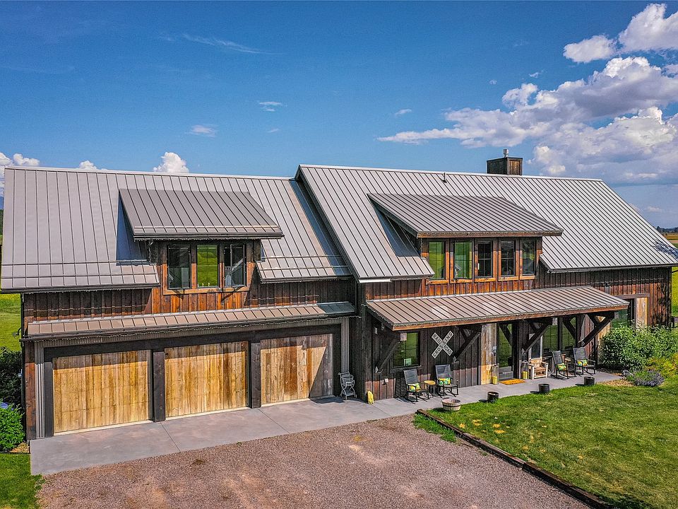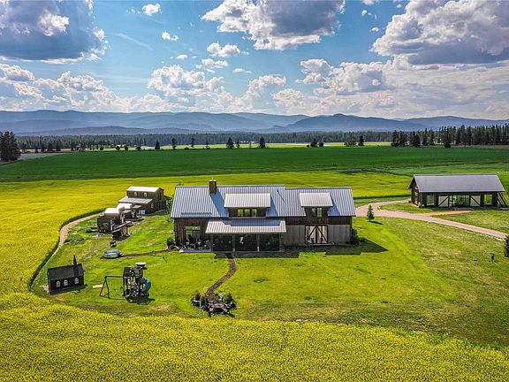 Welcome to 92 Dandy Way, a peaceful retreat in the heart of Whitefish, Montana. Nestled on a sprawling 20+ acre plot, the Main Home, Guest Home and "Party Barn" beautifully combine rustic and modern finishes to create a truly spectacular estate. The main home features an open floor plan with concrete floors and large windows throughout, offering stunning views of the serene surroundings. The heart of the home, the kitchen, is equipped with stainless counters, a gas range, oversized refrigerator and large island with bar seating. The adjoining great room offers a stone fireplace and extends to a screened-in porch, ideal for three-season entertaining. The primary suite is a private haven complete with a private bathroom, walk in closet, doors to the patio and awe-inspiring vistas through the large picture windows. Also on the main floor, find a nice sized office, a powder room and laundry.
