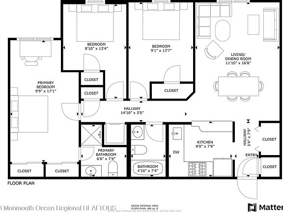 - Total interior livable area: 900 sqft