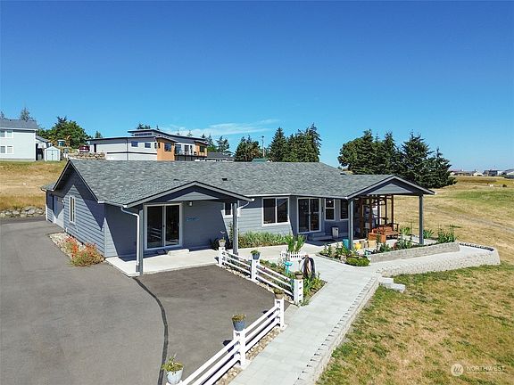 It's all about the view! Come enjoy stunning views of the Strait of Juan de Fuca, Protection Island & Mt. Baker. from this nicely appointed newly constructed 3 bdrm/2 ba. spacious single level home. An abundance of natural light, open floor plan, large den/office, great kitchen with granite countertops, SS appliances, pantry & eating bar. Beautiful garden area, heat pump, & oversized paved drive/parking area. Hot water loop & Generac auxiliary power so you're never without electricity