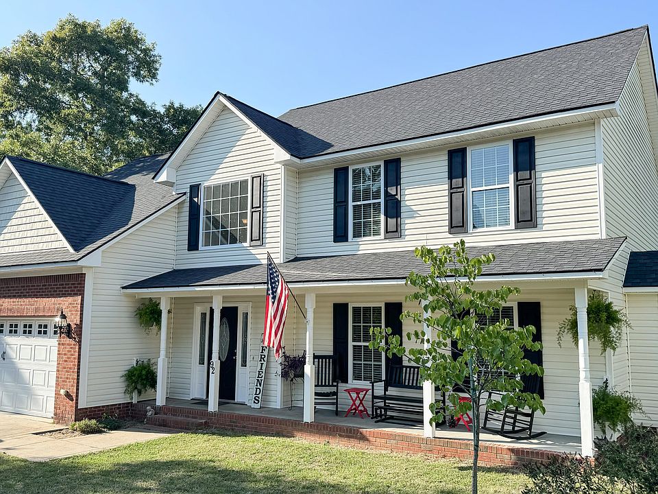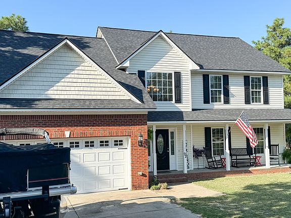 Welcome to your new home nestled in the desirable Carolina Lakes subdivision of Sanford, NC. This beautiful 4-bedroom property offers spacious living areas, including a large family room, formal dining room w/trey ceiling, and eat-in kitchen equipped with stainless steel appliances, ample cabinetry and two pantries! The expansive master suite is located on the main floor, offering trey ceiling, walk-in closet and en-suite bathroom with double vanities, a soaking tub, and a separate shower. Upstairs, you'll find three generously sized bedrooms and an extra-large bonus room complete with wet bar and side storage, perfect for a playroom, home office, or entertainment space. Enjoy the wainscoting, shiplap, and crown molding throughout the main living area. Private back yard, perfect for gatherings, or you can relax on the spacious new deck. Recent upgrades include a BRAND NEW ROOF and NEW DECK, both installed in August 2024
