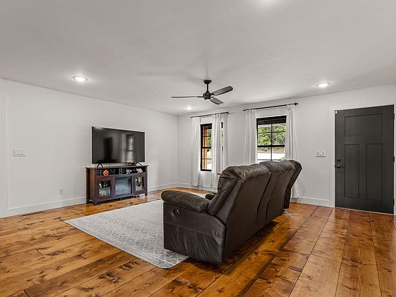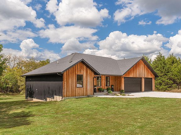 Prepare to be enchanted by this exquisite custom home, a serene retreat set on over three acres of breathtaking land!As you approach, the charming blend of wood siding and striking black garage and windows creates an unforgettable first impression. Inside you'll discover a bright, open floor plan that radiates warmth and charm. The oversized wood plank floors create a cozy atmosphere, enhancing the home's character throughout. The heart of the home is the spacious modern kitchen, a chef's delight featuring chic cabinetry, luxurious granite countertops, a charming farmhouse sink, and exquisite gold fixtures that add a touch of sophistication.Expansive primary master suite, a true sanctuary designed for relaxation. It boasts a spa-like en-suite bathroom complete with dual sinks and a beautifully tiled walk-in shower, offering a perfect escape after a long day. Two additional bedrooms provide plenty of room for family or guests, ensuring everyone feels right at home.Step outside onto the inviting back deck, where you can unwind and savor your own private oasis. Surrounded by nature and wildlife the ultimate spot for bon fires, hammocks, yard games, and gazing at the stars. Did someone say barbecue? Buc-ee's is just a quick drive away, quickly becoming the area's favorite local stop. Enjoy the charm of country living while still being close to everything Springfield has to offer!This home is not just a place to live; it's a haven where cherished moments are made everyday!Don't let this one pass you by--call today to schedule your private tour and take the first step toward making this stunning property your forever home! Bonus- 3 car oversized third bay ideal for a trailer or boat.