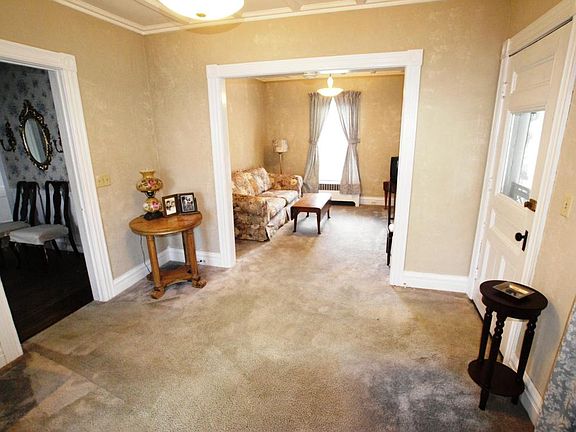 Motivated seller! Spacious village home right on the NY-VT border, recently repainted in and out and ready for new owners, large eat in kitchen with lots of cabinet space and breakfast corner-window views, double living room, formal dining, fully appliance kitchen, newer heating system, vinyl replacement windows, hardwood flooring under carpets, detached one car garage, wrap around front sitting porch, enclosed side porch, affordably priced, views of Mettowee River!