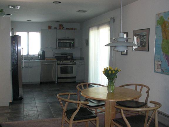 Single Family Home for sale by owner in Clifton, NJ 07012. Contemporary, architectural, custom-built, spacious 3-4 bedroom, 3 full-bath house in Rosemawr, one of the most attractive neighborhoods in Clifton. Located on quiet tree-lined street just ten minutes from Manhattan and close to shopping, entertainment, dining, and transportation (train, bus, airports). within walking distance of houses of worship. Features huge open livingroom with vaulted ceilings and skylights, hardwood floors and wood-burning fireplace. Modern eat-in kitchen with new stainless steel appliances and tile floor extending to large, open dining and family area that can be divided to add additional bedroom. Three large bedrooms and two full baths on second floor including master bedroom suite with full-size walk-in closet and full master bathroom with skylight and Jacuzzi. Full basement for recreation and storage with extra-high ceilings, prepared for adding bedrooms and full bath, and new high-efficiency washer and gas dryer. Lifetime