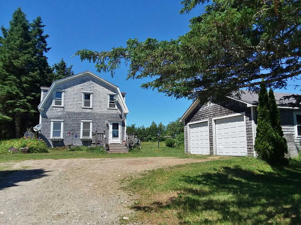 1903 Gambrel style home set amongst the blueberry fields on it's own private 3 acre lot close to the Sunrise trails. This charming property offers a spacious kitchen w/woodstove, living room, first floor laundry & and bath w/3 bedrooms on the second floor. Side deck, chicken coop & a 2 car garage. An excellent buy w/important improvements like replacement windows, exterior shingles & roof. Located in a rural setting yet minutes to the grocery store, coast & lakes.