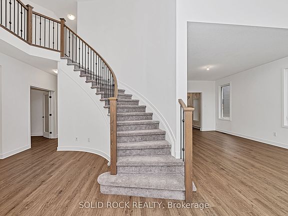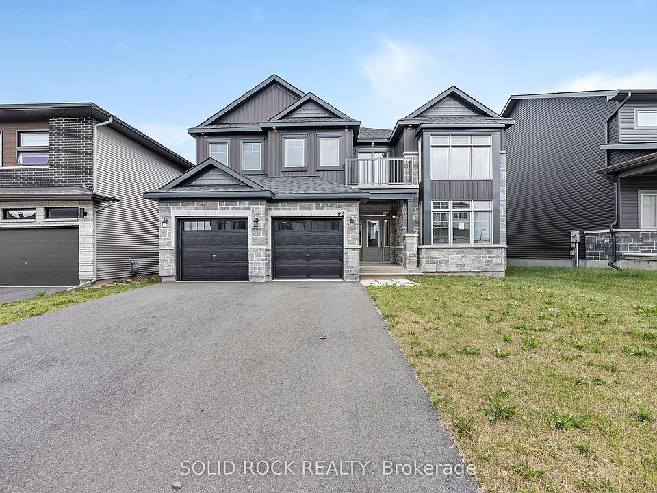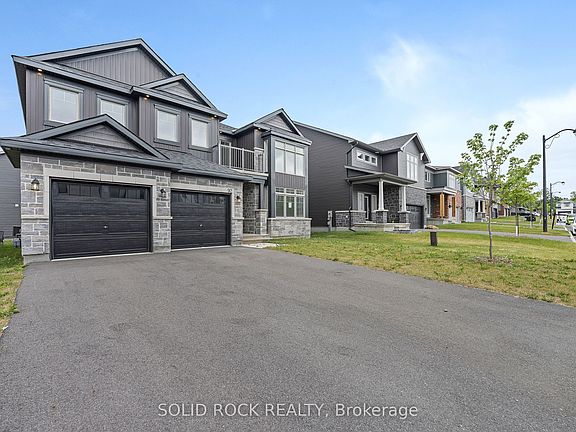 Welcome to 92 Esban Drive, a stunning Phoenix Homes "Annapolis" model in the sought-after community of Findlay Creek. Situated on a generous 50-foot lot, this beautifully designed home offers over 4,200 sq ft of elegant living space with thoughtful upgrades and an ideal layout for family living and entertaining. Grand spiral staircase, and soaring vaulted ceilings in both the living room at the front and the sun-filled solarium at the back. The spacious layout includes a separate dining room, a private main-floor study, and an open-concept family room with a cozy gas fireplace. The gourmet kitchen is a chefs dream, complete with a large walk-in pantry, extended cabinetry, a generous island with breakfast bar seating, and seamless flow into the bright breakfast area. Upstairs, you'll find four large bedrooms and a loft, offering plenty of space for every member of the family. The primary suite is a luxurious retreat with its own gas fireplace, a large walk-in closet, and a spa-like 5-piece ensuite. Bedroom 2 features a private front-facing balcony, while Bedrooms 3 and 4 are connected by a convenient Jack and Jill bathroom. Additional highlights include a double car garage with inside entry, a second gas fireplace in the family room, and plush wall-to-wall carpet on the upper level. Located close to parks, schools, shopping, trails, and just minutes from the airport, this impressive home offers the perfect combination of size, style, and location in one of Ottawa's most desirable neighbourhoods.