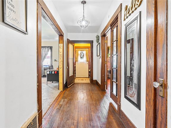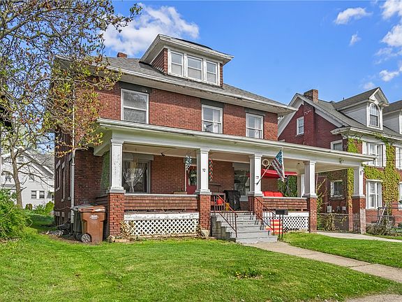 Stately and spacious family home in Sharon! This 5 bed/2.5 bath BRICK home, with countless original turn-of-the-century details, has a lot to offer a modern family. One block from the elementary and high schools, shopping, dining and more! Inviting entry, large open rooms, high ceilings, original wood floors, decorative tile and trim work! Many thoughtful updates and upgrades as well: carpet in the living room (original floors underneath), new roof in 2019, lighting, and paint throughout. Full bathrooms have been updated with new floors, sinks and decorative trim work! Kitchen is extremely large and open with tons of cabinet and counter space. Upstairs offers a full bath on 2nd and half bath on 3rd level, along with 5 light and bright bedrooms. Outside, enjoy the charming covered front porch or back yard with privacy fence. All in all, 92 Euclid Avenue is a solid home that is ready to host excellent moments with family and friends!