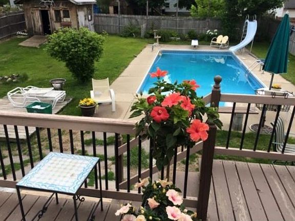 Perfect location for this three bedroom home! You'll love the hardwood floors, dining area and large deck with views of the yard and sparkling inground pool! The lower level has a family room with a cozy gas stove that creates a warm ambiance. It also has a half bath, an unfinished area with workbenches, perfect for a workshop or hobby room or maybe even an in-law style set up with it's own entrance. Walk out to the fully fenced, level yard, great for entertaining, playing, swimming, gardening and for BBQs. All appliances are included. Also includes a 140sf shed that's great for storing all your outdoor tools such as your snow blower and lawn mower.
