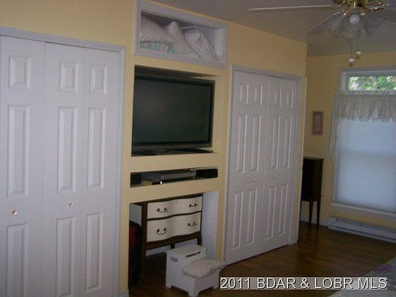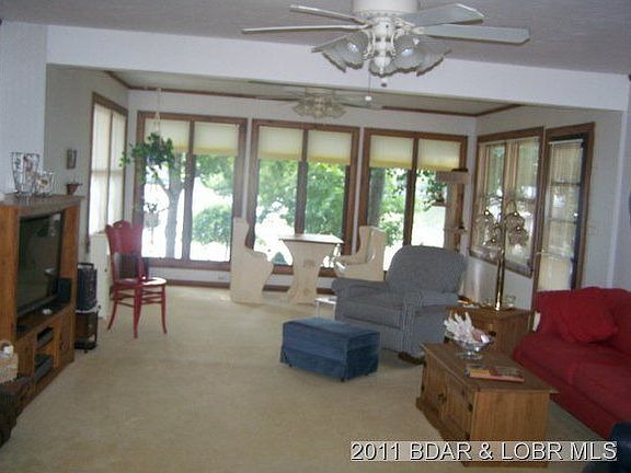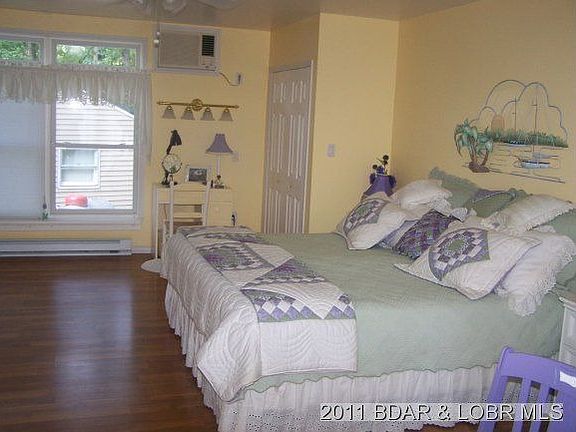 Well maintained older charmin ranch style home on almost level 100' lakefront lot with deep water. Located in a great 'No Wake Cove' with main chanell view. The master bedroom is newer and spacious with adjoining bath with room to enlarge if desired. Home is well insulated. Newer 1000 gal septic tank and laterals recently all state approved. Boat dock has 2 slips, 2 hoists, covered deck area to relax and enjoy the view, and fish cleaning station. Lake pump to water the lawn with sprinkler system. Also included is a 2nd tier lot with 2 car garage with full upper level for storage or possible living quarters. Only 1.5 miles from Laurie. $165,000 for home without 2nd tier lot and garage-see MLS 3086461. Brokered And Advertised By: Lake Ozark Property Listing Agent: PAT HEINERIKSON