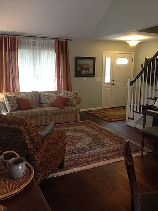 Remodeled in 2014 with a custom eat in kitchen including granite, island and farm sink. Hardwood floors throughout main level with an impressive family room opens off the eat in kitchen. Vaulted ceilings, wood burning fireplace and sliders to a 15x14 deck to enjoy the private level backyard. The pretty Master suite includes vaulted ceilings, walk in closet and full bath with jetted tub. An additional two bedrooms and full bath on the upper level. Full basement partially finished with rec room...