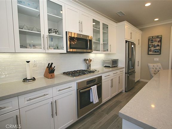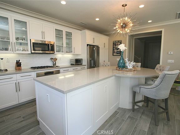 Experience modern luxury living in this newer home with a premium ridgeline location offering breathtaking mountain views at The Peake by Shea Homes. This beautifully upgraded 3-bedroom, 2.5-bath residence showcases an open-concept Great Room floorplan that seamlessly blends style and functionality. The chef's kitchen features sleek quartz countertops, upgraded white Shaker cabinetry, designer hardware, and a GE stainless steel appliance package. Additional upgrades include contemporary flooring, 5.5" baseboards, recessed lighting, enhanced insulation, and custom two-tone paint throughout. Upstairs, you'll find spacious bedrooms, including a luxurious primary suite with dual sinks, a designer tile shower, and two large closets. The upstairs laundry room offers abundant storage, a sink, and washer/dryer hookups for ultimate convenience. Step outside to your extended backyard retreat with stone flooring and serene mountain views perfect for relaxing or entertaining guests. Enjoy resort-style living at Baker Ranch, featuring lagoon-style pools, tennis courts, walking trails, parks, BBQ and picnic areas, spas, children's splash zones, sports courts, and a beautifully appointed Clubhouse.