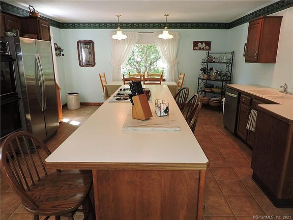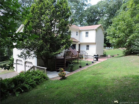 Nestled at the end of a quiet culdesac, this very private 5 BR, 2.1 BA Colonial offers a huge eat in kitchen with an 8 island, sunny breakfast nook and has a slider to the back deck. Beautiful hardwood floors grace the living room with a large bay window, formal dining room, family room, playroom and 1st fl bedroom. A half bath finishes the main level. Upstairs you will find 4 more bedrooms. The spacious master bedroom has 2 double reach-in closets and a master bath with a 4 shower. Another full bath and laundry closet finish the 2nd floor. Newer features include the roof, windows, siding and on demand hot water heater. Outside you will find some beautiful stone walls, rock outcroppings, a granite stairway to the back patio and a 2 story shed that is great for storage and clubhouse combined. This home is just a short walk to Community House Park and has easy access to I-84, shopping and fine dining! Come and see you won't want to miss it!