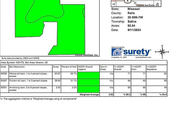 HIGHLY TILLABLE 92 +/- acres with 82+/- acres tillable. Surrounded by both crop land and woods for that perfect investment & recreational property combined into one. North of Clarence Cannon Dam approximately 7 miles with less than 2 miles of gravel. A mix of Mexico, Putnam & Armstrong Loam soils. NCCPI overall 69.3. No tenant in place for 2024. All hunting rights pass to buyer. Consider this Mark Twain Lake, Ralls County investment. Great spot to drop in a cabin or shouse to make this a 100% winning investment in Missouri Land. Gentry Road, Monroe City, Ralls County, Missouri at Mark Twain Lake! See it, Love it, Own it!