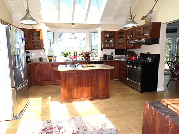 Outstanding property in a private pastoral setting w/stunning views of the CT River & 108 ' of river frontage. Quality built home w/excellent improvements. Dramatic & delightful KIT w/vaulted ceiling, skylights, granite countertops, raised panel cherry cabinetry, work island w/prep sink w/storage under & ceiling fan. Light hardwood flooring throughout the majority of the home. Stunning LR & DR combo w/Rumford FPLCE outfitted w/a pellet stove, bow window, chair rails, wainscoting, 12/12 windows & built-in bookcases. Dining area w/a triple slider & stunning river views. 1st FLR BA w/double dressers & walk-in shower. Office w/built-in drawers & corner cabinet. 1st FLR BDR w/wall of closets, which opens out into the beautiful 12x12 enclosed sunroom. Lovely 2nd FLR primary BDR w/dressing area, double closets & tile floor. Pocket door into 3/4 bath w/2 back to back sinks w/mirrors & a wall of windows w/river view. Primary BDR w/Rumford FPLCE, dressing area, pocket door into BA. Lovely 2nd BDR w/pickled floor, 1/2 vaulted ceiling, siting area & double closets. Part of the land is level w/carefully planned trees, shrubs & gardens. Detached 24x32 Post & Beam barn, w/wood flooring, side storage area & a double carport on the front. This is a remarkable, one of a kind property!