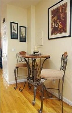 Pristine one bedroom in a historic 1860 brick rowhouse. Hardwood floors throughout, open living/kitchen area, high ceilings, renovated kitchen with maple cabinets, granite countertop and stainless appliances. The bedroom features charming ceiling beams and it leads out to a large deck. Renovated bathroom with washer/dryer.