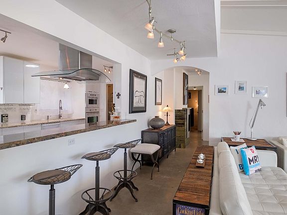 Truly one of a kind! Two condos side by side exquisitely remodeled into one 4 bed, 2 bath unit with 1783 sq. ft. living space and 1172 sq. ft. private terrace. Large chef's kitchen with wine cellar. Formal dining room and large living room with fireplaces reminiscent of a hip, Soho loft with polished concrete floors. Walk through a huge glass and steel overhead door to a grande terrace and dine al fresco by the outdoor kitchen and waterfall; or gather around the gas fire pit with built in seating. This is a mini compound that you must experience for yourself!