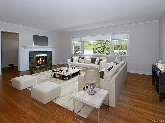 Move right in to this spacious ranch featuring a living room with fireplace, dining room, updated kitchen and two updated bathrooms, sunroom/den and two bedrooms. The lower level is easily finished and features a fireplace and windows in two rooms. This home has a new roof, the windows on the first floor of the home have been replaced with double pane, energy efficient windows and the hot water heater is a energy efficient GE GeoSpring hybrid heat pump. There is a two car garage, central air and a deck overlooking a lovely landscaped yard. The home is surrounded by many larger homes. Enjoy as is or consider the expansion possibilities! Please note - basement windows and garage windows have not been replaced.