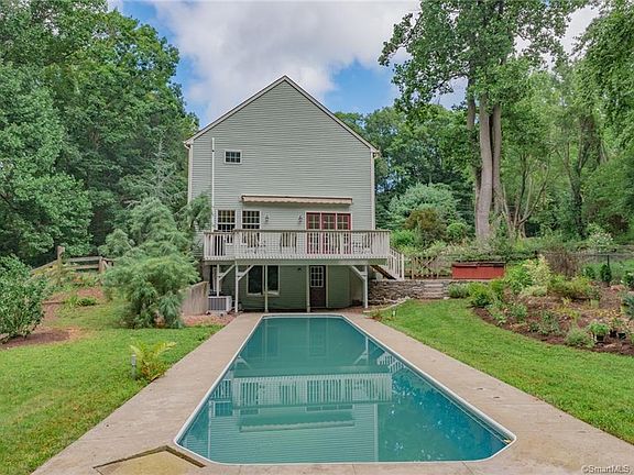 Tastefully appointed 4 BR Colonial with bonus rooms. Walk-out lower level to a private lap pool and hot tub surrounded by beautifully landscaped gardens, patios, fencing, and stone work with plenty of room to have a play scape and even through a ball or two. The unfinished lower level could add 1,204 sq feet of living space. This homes kitchen is bright with stone countertops and stainless steel appliances. The main level sports hardwood floors and a generous formal dining room with crown and chair rail. The Living Room has built-ins and a fireplace. In addition the main level has a bonus room off the kitchen and dining room that leads out to a large deck for entertaining with a retractable awning overlooking the pool, gardens, and hot tub. The larger master suite has an adjoining bonus room, large walk-in closet with a pocket door and full bath with two vanities. Walk down the hall and will find 3 additional bedrooms, full bath, and laundry closet. A spacious home at a great price