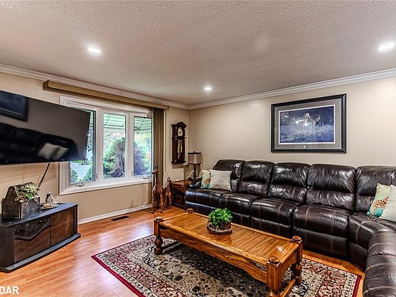 4-BEDROOM BUNGALOW IN A CENTRAL LOCATION WITH A PRIVATE BACKYARD RETREAT & BRIGHT UPDATED INTERIOR! A truly inviting East Barrie bungalow, this home is packed with updates, charm, and thoughtful details from top to bottom, offering a lifestyle that is as comfortable as it is functional. Centrally located, you are within walking distance to schools, shopping plazas, Georgian College, parks, and the Eastview Arena, with Royal Victoria Hospital, Kempenfelt Bay with Johnson’s Beach and scenic shoreline trails, and Barrie’s vibrant downtown just minutes away. The exterior boasts an attached garage with inside entry, a generous driveway, and a fully fenced backyard retreat where lush gardens, a tranquil pond, a mature shade tree, and an 8x12 ft storage shed with hydro surround a sprawling rear deck with charming pergola accents. Step inside to open-concept living and dining areas bathed in natural light and enhanced with pot lights and contemporary finishes, flowing into an updated kitchen with sleek cabinetry, quartz countertops, stainless steel appliances, pantry storage, and a walkout to a newer side deck with a gas hookup for easy outdoor cooking. Three bright main floor bedrooms are paired with a 4-piece bathroom, including a primary suite with semi-ensuite access and its own walkout to the back deck, creating a private escape. The lower level extends the living space with a fourth bedroom, a 3-piece bathroom, a large family/media room with a cozy natural gas fireplace, a reinforced wall designed for a big-screen TV, along with laundry, a workshop, storage, and additional unfinished space awaiting your personal touch. Added peace of mind comes with a durable steel roof and updated mechanicals, including a full natural gas hookup replacing the original baseboard heating, plus an upgraded furnace and A/C system for year-round comfort. Filled with charm, updates, and spaces designed for connection, this #HomeToStay is ready for you to move in and start making memories!
