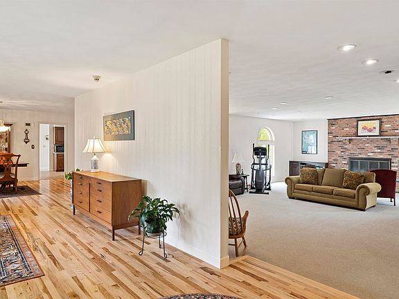 Nestled in one of Manchesters most desirable neighborhoods, this lovely home is an entertainer's dream. As you step into the elegant front entry, your eyes are immediately drawn to the spacious sunken living room and its dramatic brick fireplace. The sunny front living and dining areas flow effortlessly, offering options to create formal or informal spaces. The kitchen is spacious, with plenty of counter and cabinet space and offers both a breakfast bar, and breakfast nook for informal dining. The bedroom wing has 3 bedrooms, including two en-suites! The primary en-suite is spacious and boasts a large walk-in closet and luxurious bath. The second en-suite has a full bath, offering options for in-law or guest quarters. This lovely home enjoys a highly prized private backyard complete, with a heated inground pool and expansive patio, perfect for backyard cookouts and summertime fun! Lovingly maintained, updates include beautiful hickory floors, roof ('16), boiler ('22), heat pump, on-demand generator, and more. Convenient to everything including top restaurants, shopping cultural activities like the Currier Museum of Art, and Manchesters' vibrant down town. Close to the Manchester airport, major highways and under an hour to Boston, the seacoast, and skiing. A must-see!