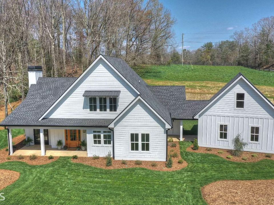NEW Modern Farmhouse Extraordinaire! Move-in ready! 3BR/2.5BA on 1.53 Acres w/2 car detached garage. Beautiful Setting w/views of pasture & mountains! Open concept; custom touches throughout; soaring cathedral ceiling, wood burning brick fireplace, french oak wood floors, nice mix of shiplap & drywall. Well appointed kitchen w/brick backsplash, farmers sink, SS appliances, island & glass front cabinets. Doors open to covered porch w/outdoor kitchen & linear gas fireplace. Master on main has tile shower & oh la la soaking tub. Half bath, mud area & laundry on main. Open staircase to upstairs features 2 BR, Jack-N-Jill bath, loft area. Dog kennel under staircase. (12x24 area available over garage, load bearing for a BR or office.) Located in "Highpoint", small gated community, less than 10 min. from Ellijay, all paved rds, close to new schools, organic farm store, vineyards, apple orchards & more.