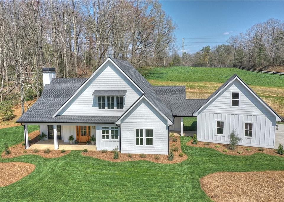 NEW Modern Farmhouse Extraordinaire! Move-in ready! 3BR/2.5BA on 1.53 Acres w/2 car detached garage. Beautiful Setting w/views of pasture & mountains! Open concept; custom touches throughout; soaring cathedral ceiling, wood burning brick fireplace, french oak wood floors, nice mix of shiplap & drywall. Well appointed kitchen w/brick backsplash, farmers sink, SS appliances, island & glass front cabinets. Doors open to covered porch w/outdoor kitchen & linear gas fireplace. Master on main has tile shower & oh la la soaking tub. Half bath, mud area & laundry on main. Open staircase to upstairs features 2 BR, Jack-N-Jill bath, loft area. Dog kennel under staircase. (12x24 area available over garage, load bearing for a BR or office.) Located in "Highpoint", small gated community, less than 10 min. from Ellijay, all paved rds, close to new schools, organic farm store, vineyards, apple orchards & more.