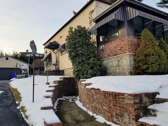 Fabulous ranch-style home directly abutting the 8th hole of the Derryfield Country Club in the Hanover Hill area! This lovingly maintained home on a fenced double lot has updates that include Central AC, NEW windows throughout, updated Kitchen and more! Be sure to note the amazing craftsmanship of custom herringbone & parquet accent hardwood flooring in the Dining Room & Living Room, separated by a classic arched doorway. The fireplace with full mantle & built-in shelving gives a nod to the classic lines of this home, along with the massive front porch with windows galore! Updated full bath & 2 bedrooms with hardwood flooring finish out the 1st floor. Half of the HUGE basement has been finished, for the perfect Theater Room, Man Cave or Home Office. Convenient half-bath, abundant storage & great workshop possibilities exist in the unfinished area, with two exits to outside: a full door that opens to a paved path with brick sidewalls that leads to the street & a bulkhead exit also. There are TWO detached garages: a 24'x24' oversize 2-car with auto-open; the other is 20 x 12. Fantastic screen house is perfect for summer gatherings! Beautifully landscaped yard with flowering trees & shrubs, evergreens, stone accent walls front & back, and even a backyard stone fireplace! Perfectly located at the end a quiet, dead end street, convenient to shopping & dining, I-93, Rte 101 and more. **Multiple Offers received - Trustees to review before the weekend**