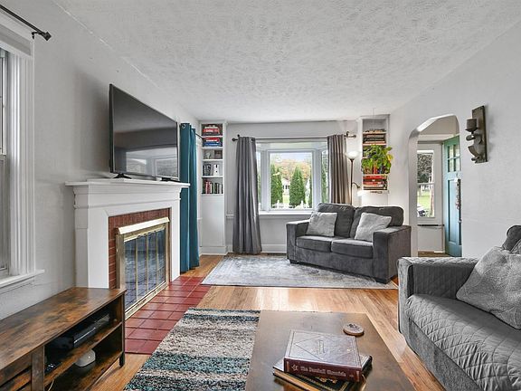 Storybook Charmer - Find yourself captivated by this 2 bed, 1.5 bath home nestled in the heart of LaPorte. As you step inside, the main level displays refinished hardwood, a cozy fireside living room w/ built-in shelving & beautiful bay window exuding natural light. The dining area provides an intimate setting that flows effortlessly into the compact kitchen which presents custom cabinets, hardwood & functionality. The sunroom, encompassed by windows, is perfect for entertaining or sipping coffee by the second fireplace. Step outside to the patio equipped w/ a fully fenced yard perfect for privacy & dog lovers also containing a storage shed. The upper level showcases the primary bedroom which boasts two closets for ample space & hardwood, alongside a spacious second bedroom/office & full bath. The unfinished basement offers plenty of opportunity to expand or perfect for storage. Conveniently located by schools, downtown & Beechwood golf course. Extras: new gutters/siding & newer HVAC!