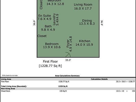 - Total interior livable area: 1,229 sqft