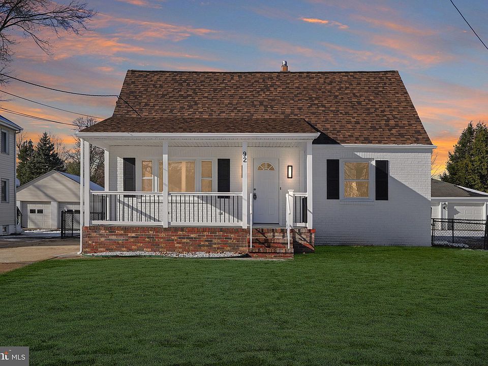 Discover the charm of this meticulously renovated Cape-style home, ideally located for convenience and comfort. Step into the inviting living room, where gleaming hardwood flooring extends throughout. The eat-in kitchen features ample cabinetry and stainless steel appliances, perfect for culinary enthusiasts. A spacious sunroom overlooks the private backyard, offering a tranquil retreat. Two generously sized bedrooms and a full bathroom complete the first floor. Upstairs, you'll find two additional large bedrooms with ample closet space and a second full bathroom. The home also includes an unfinished walk-up basement, providing endless possibilities for storage or future expansion. The detached two-car garage, complete with electricity, is ideal for a woodshop or any hobbyist's dream.