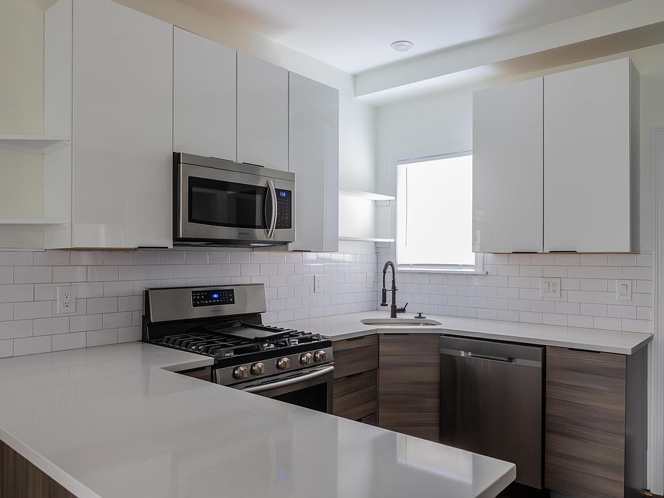 Available July 2nd. modern apartment with central AC, in unit laundry modern kitchen and 2 large bathrooms great for roommates since both rooms are the same size Lots of storage plus basement storage Easy walk to public transportation Renters are responsible for all utilities including water.