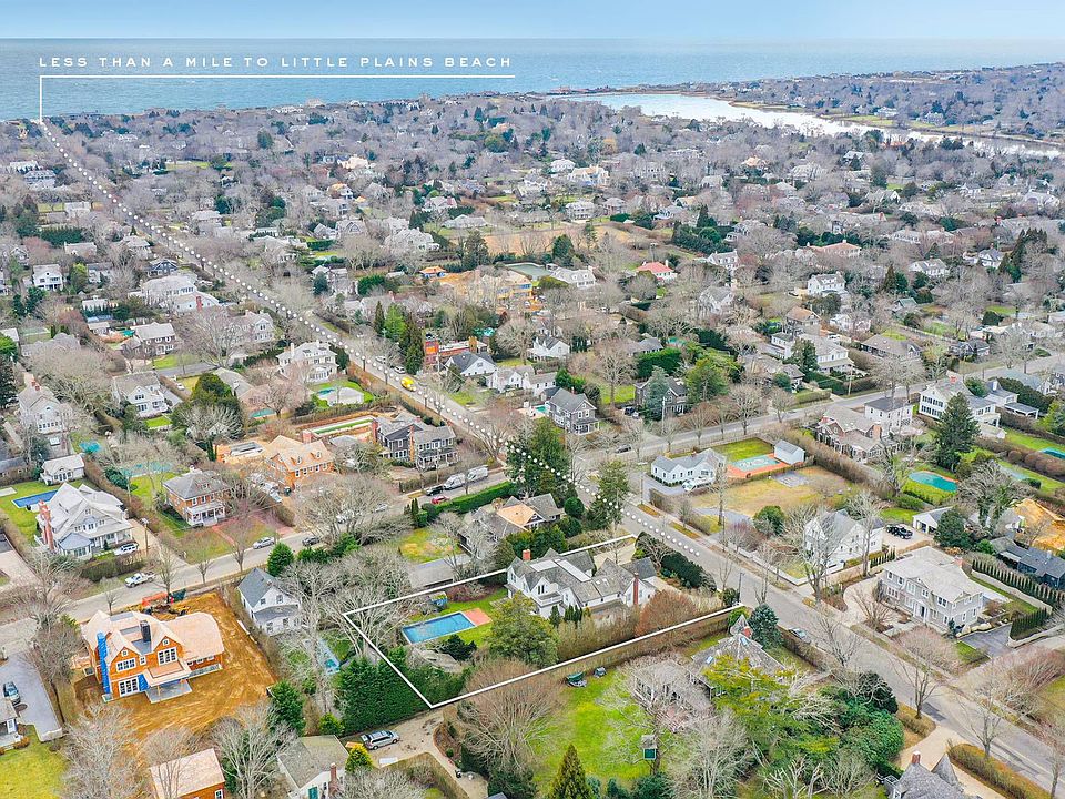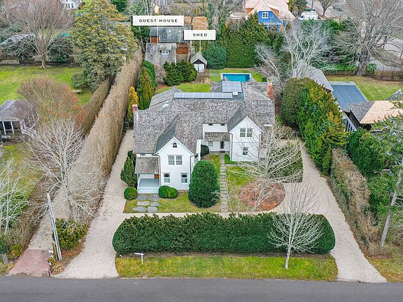 On coveted Little Plains Road, a short distance to the Village center and to the shoreline, find this family compound with an expansive 5,800 +/- sq. ft. of first and second-floor living spaces, a renovated main house together with a legal, renovated, guest cottage ensconced on picturesque, landscaped grounds with tall, perimeter trees for added privacy. Enter to a substantial, open vestibule and then, to the large great room with numerous French doors that provide abundant natural light and views of the wonderful backyard and a large kitchen area with an oversized island. There are numerous rooms on the first floor for entertaining, family gatherings, and private repose. A room adjacent to the kitchen area can be used as a den or as an additional dining area and this room flows to another spacious living room with a marble fireplace and another adjacent den with a window seat under a bay window. There are two staircases in the home with elegant, custom woodworking that ascend to four en-suite bedrooms including a magnificent, primary bedroom with window exposures in three directions and its own private deck overlooking the backyard, a gas fireplace and an oversized walk-in closet with custom, built-in cabinetry. Adjacent to the primary bedroom is an office with a distinctive, paneled, interior, gabled roof lines and its own bathroom. One of the other bedrooms is a suite with its own sitting room. Outdoors in the private backyard, a pool with poolside patio is set amid lush landscaping with dramatic towering trees including a magnificent holly, ginkgo tree, tall rose bushes and other specimen plantings and still plenty of grass yard area for play. A two-story guest house tucked in the corner of the property has a full kitchen, full bath, and living room and the guest cottage can be accessed from a private, brick pathway running along the side of the property. There is an additional accessory structure in the yard available for storage or other purposes.
