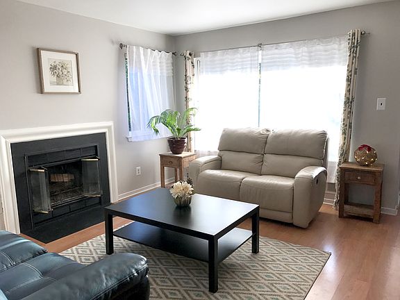 Completely upgraded end-unit townhouse in a fantastic location on a quiet cul-de-sac backing into woods - lots of privacy! Beautifully remodeled kitchen (2017) with quartz countertops, glass backsplash, and stainless steel appliances. Newer windows let in plenty of light. Living room features wood-burning fireplace and pergo flooring on entire first floor. The large second floor bedrooms with hardwood floors (2015) each offer ensuite bathroom (updated 2016 and 2017) and walk-in closets. Finished basement offers plenty of storage closets and room for entertainment. Roof 2007, HVAC and furnace 2010. Unpack and enjoy the nearby pool, parks, shopping, and more! One of the best locations in Huntington Park and in move-in ready condition!