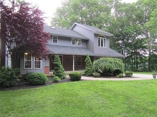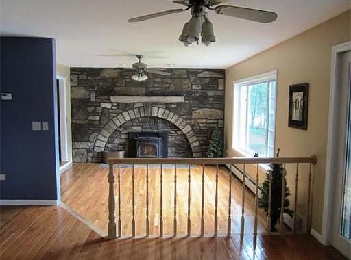 Rare opp. to own a Gorgeous Private Waterfront Paradise on quiet Sacarrappa Pond. 5+ acres just minutes to highways. Swim, Fish & Boat (only boats 2HP or LESS allowed) from your own sandy beach. Beautiful stonework inside & out. 2 outbuildgings for all your toys & tools. Enjoy the wide open floor plan for entertaining - beautiful hardwoods. Kitchen opens to enclosed 3 season porch & out to deck. A must-see master suite w/ cathedral ceilings & spa tub. Multi-use finished walkout basement. Many 2012 Updates. Fabulous water views throughout.