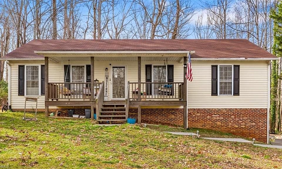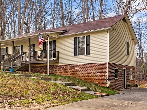 Updated home with a rocking chair front porch that has so much to offer! Located minutes from High Point, Lexington, Winston or Greensboro, the location is convenient to anywhere in the Triad. 3 bedrooms and 2 baths on the main level, this home offers an easy-living floor plan! Great sized primary suite! The large living room features vaulted ceilings and a fireplace, opening to the dining room and updated kitchen. Great deck with privacy - no homes built behind, just a quiet wooded area beyond the back yard! Additionally, this home offers a separate, large studio as an in-law suite. With its own exterior entrance, this space boasts a full kitchen, a full bathroom, a living area and bedroom area. It connects to the home's unfinished basement that houses the laundry room and offers storage. PERFECT for multigenerational living or longterm guests!