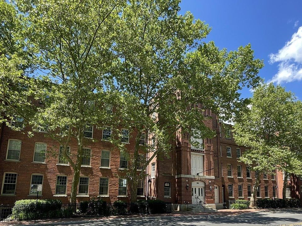 This spacious 2 bedroom, 2 full bath condo is flooded with natural light and features 9+ foot exposed beam ceilings and brick walls. Entering the condo, there is an oversized coat/storage closet to the right, full bath to the left, and bedroom straight ahead. The stairs bring you up to the main living area, featuring an open concept living room/dining room and galley kitchen. The second bedroom with full bath is to the right, at the top of the stairs. Newer HVAC air handler and heat pump. New luxury vinyl tile in the kitchen, wood laminated flooring in the main living area, and luxury vinyl plank flooring in the newly renovated upstairs bathroom. Upstairs bathroom has been renovated in 2023 with shelving/cabinets to remain. Brand new carpeting installed in both bedrooms. New dishwasher installed in 2023. This condo has been freshly painted and new baseboards added throughout. HOA features coin-op laundry, a fitness center, meeting room, on-site fenced in dog park, and ample off street parking (assigned and visitor). Walking distance to local amenities including restaurants, stores, library, and post office. There is a common area for grilling outside along with a storage locker in the lower level of the lobby. Access to the unit is available through the front Main st level, or from the rear using the elevators or stairwells.