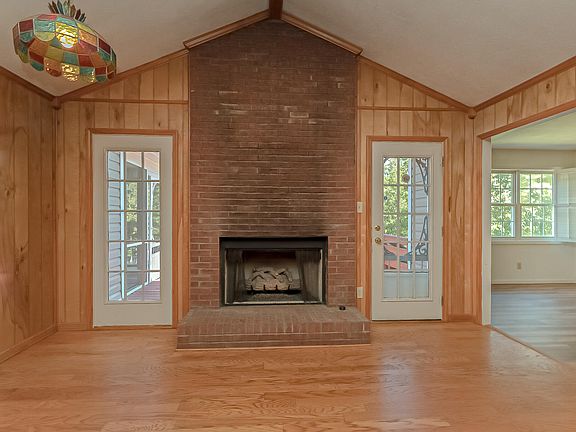 The greatroom is anchored by a fireplace on the far wall where flanking doors opens to the screened porch and deck area. The pond view and wooded property beyond is also viewed from the owners bedroom, the breakfast room and the kitchen.