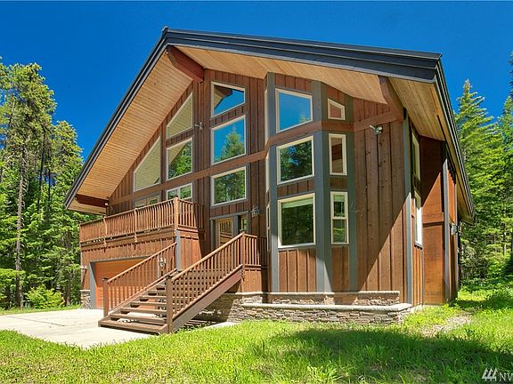 Don't overlook this Amazing Home on this Beautiful 4-acre Private Setting. Abundant year round activities out your door. Easy commute to Seattle. Premium Quality w/o the high HOA dues and restrictive CCR's. Gorgeous vaulted ceilings w/ Beautiful Rustic Beams. Large Modern Kitchen! Vaulted Master Suite, Covered Decks, Huge Family Room. Large Loft, Guest Cabin! Wood & Gas Fireplaces, Spray foam insulated, Wrought Iron Railings. Wired Sound throughout Too much to list. (See all Photos and Tour).