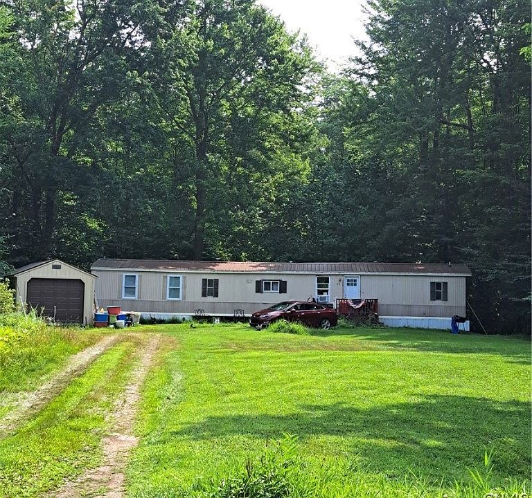 Handyman single wide mobile home with a nice addition; which give you a larger living room & dining room! The seller has done a bit of remodeling here, but it will still need some more finishing. There is a place for a second bathroom on the opposite end of the mobile home that has been dismantled for ease of putting in new fixtures. You will love the mostly wooded 7.5 acre lot that offers much privacy for being in the Village limits of Cleveland with public water & sewer. There is a nearly new large storage shed, so you can have your overflow items secure. Certainly very livable for the price with much of the value in the lot!