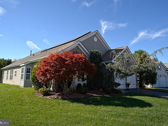 Beautifully maintained, Sanibel model lets in plenty of sunshine and is move in ready! Features 3 bedrooms, 2 baths, custom window treatments, recessed lighting and crown moldings throughout. Both the kitchen & family room have engineered hardwood floors for easy maintenance. The kitchen has white cabinets, neutral Corian countertops and an electric stove, but has a gas line for an easy conversion. The family room centers around a gorgeous custom brick gas fireplace to keep you warm on those cold days. The large paver patio runs the width of the house with a retractable awning and parklike view! There is walk-up attic storage above the garage. Plus, energy saving solar panels, offering a cost savings on your electric bills. This is a must see house!