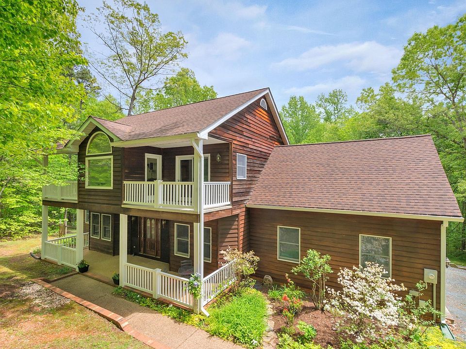 Located in the Hidden Valleys neighborhood on 2 LOTS totaling 6.5 wooded acres that abut Cunningham Creek, this meticulously maintained home offers wonderful privacy in a natural setting that also boasts great connectivity w/ Firefly fiber optic internet. *The 2-acre building lot offers possibilities or can be kept as a natural buffer* Enjoy the outdoors from your expansive full front porch, two 2nd level private porches or rear deck w/ its built-in seating. Interior highlights of the main level include 9’ ceilings/ a thoughtfully designed kitchen w/ brick flooring, extensive oak cabinetry, center island w/ gas cooktop/ a breakfast bar & a cozy eat-in, coffee, reading, etc. nook w/ a see-through stone fireplace w/ the living rm on its other side that features a vaulted ceiling, wonderful natural light, oak built-ins/ a large sunroom w/ numerous windows that were just replaced (3/23)/ a convenient utility/laundry rm w/ a spa-like feel full bath (remodeled 2017). Upstairs is the primary bedroom suite w/ vaulted ceiling, large walk-in closet, attached bath & an adjoining study w/ vaulted ceiling, large picture & arch window & private porch both w/ views of the natural setting/ 2 other bedrooms (1 with a private porch) & a full bath.