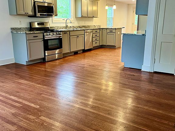 Updated West Asheville home in quiet neighborhood. Conveniently located just off Brevard Rd, walking distance to Haywood Rd. Open floor plan with spacious rooms and plenty of natural light. Beautifully renovated kitchen with stainless appliances, including gas range, dishwasher, and built-in microwave. Adjacent dining area that opens to a large, private rear deck. Two bedrooms with hardwood floors and ceiling fans, and two full bathrooms on the main floor, with a third bedroom downstairs with new LVP flooring. Large storage area downstairs with W/D hookups and walk out basement to spacious backyard and ample off-street parking.