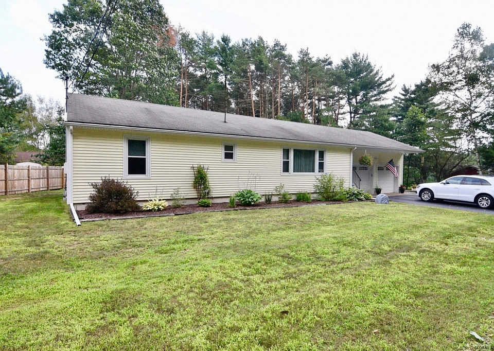 Experience the ease of single-story living! This low-maintenance 3 bed, 2 bath Ranch home features large bedrooms, lots of storage & a list upgrades! Completely renovated kitchen, new carpets in the bedrooms, stone patio & wooden deck. Updated bathroom vanities, bathtub & tile shower. Full basement with partially finished room & storage space. Enjoy the outdoors from the large fenced-in back yard or explore the walking, hiking & biking trails across the road at Moreau State Park. Conveniently located just 10 minutes from Saratoga Springs & Queensbury with easy access to I-87.